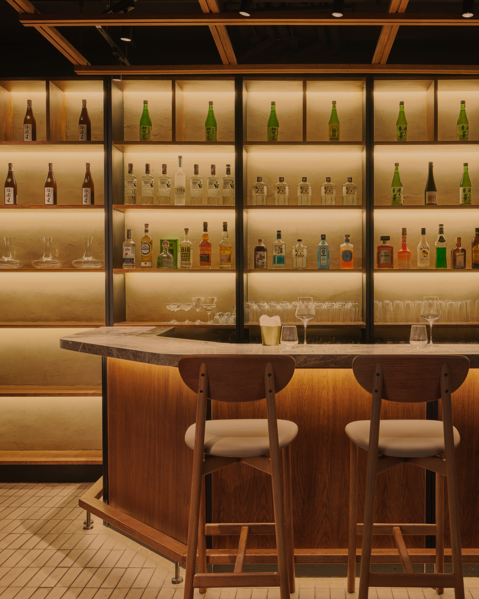 照明は、空間の質感と職人技を微妙に強調します。